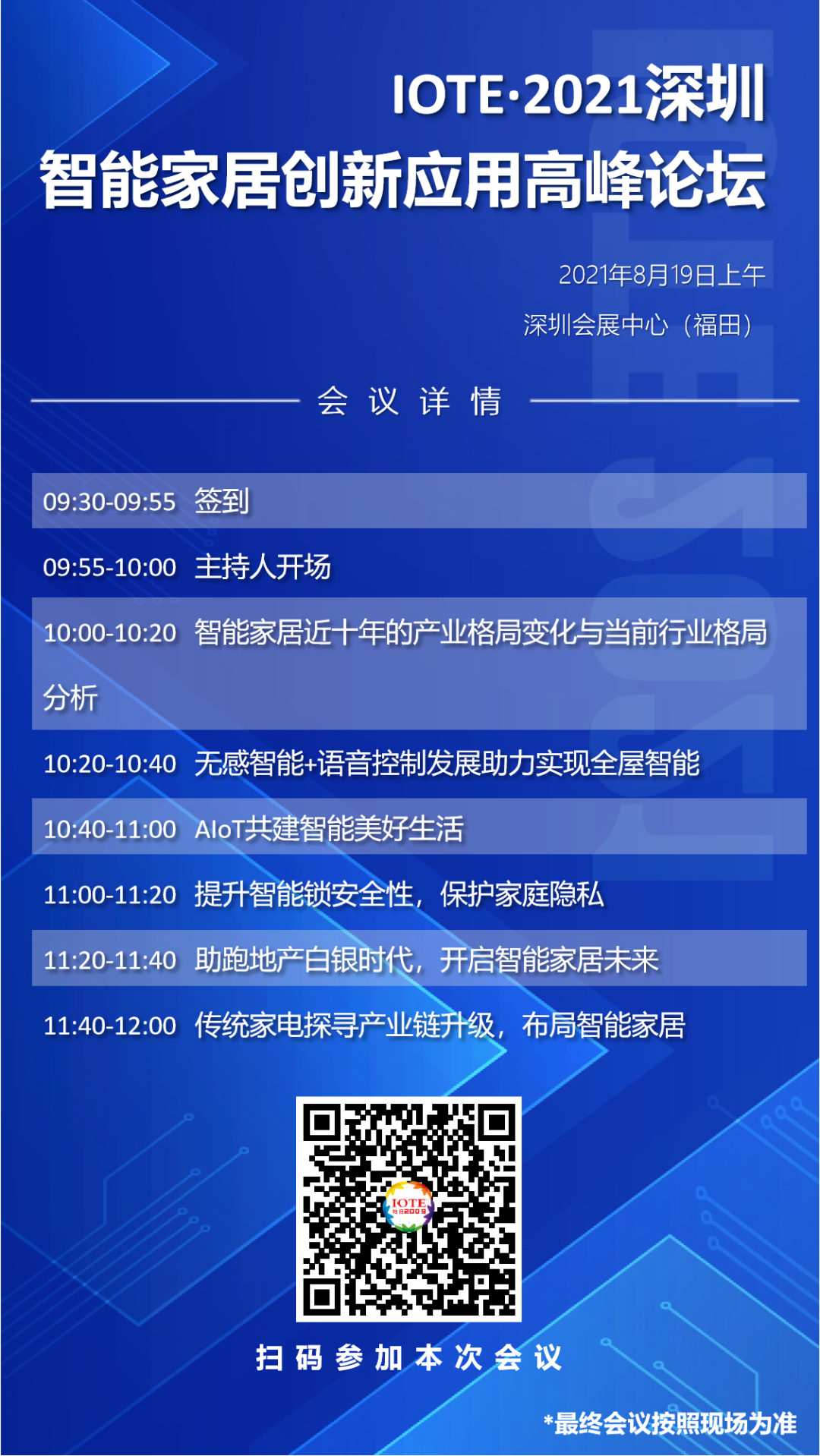 | 2 | IOTE·2021深圳智能家居创新应用高峰论坛 |