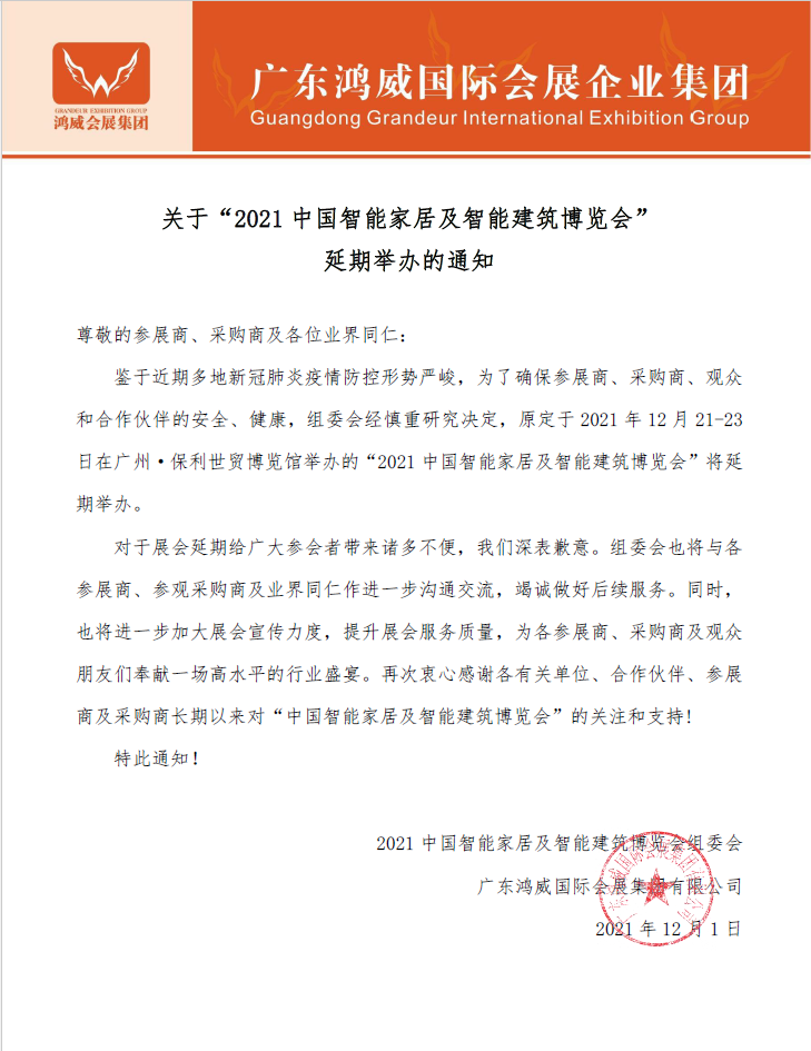 2020中国智能家居及智能建筑博览会时间:2020年12月21...