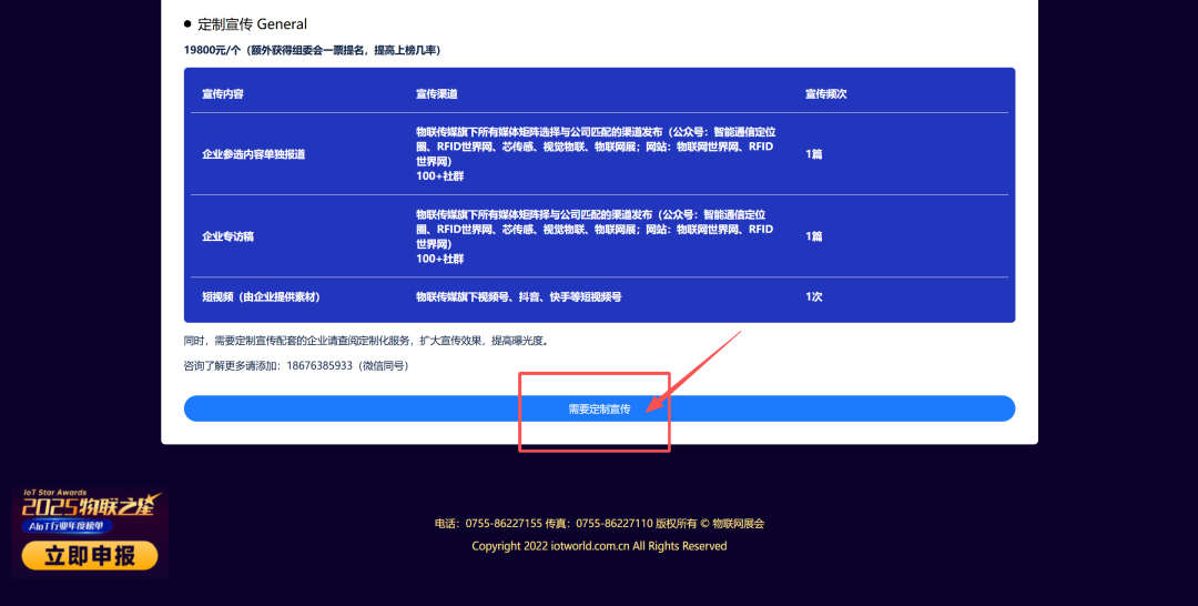 本次物联之星分为通用宣传和定制宣传两种宣传方案: